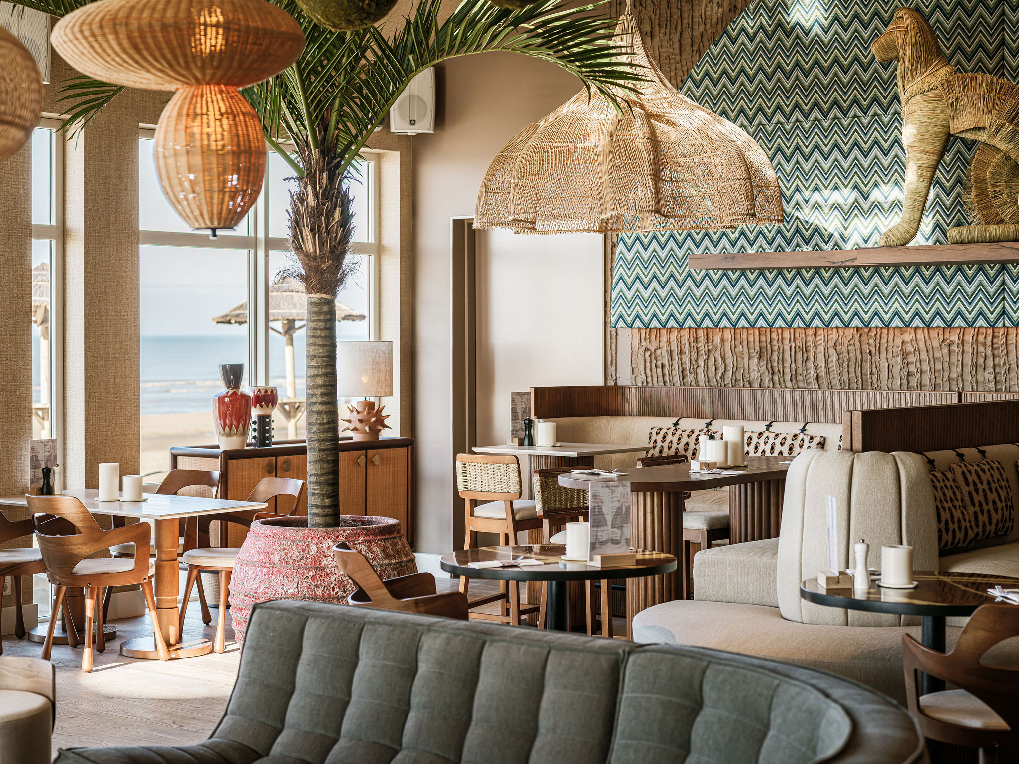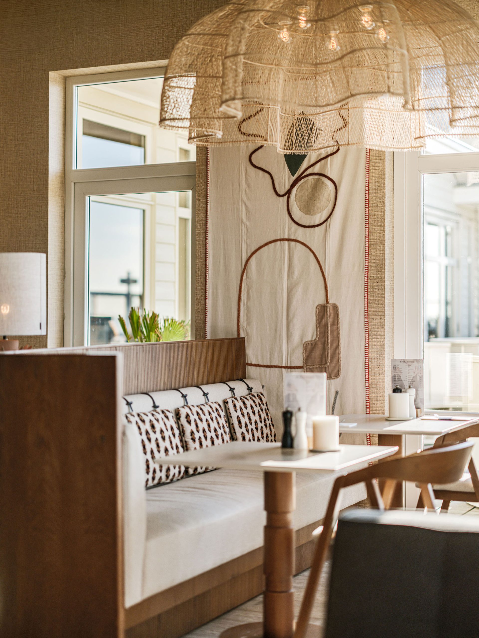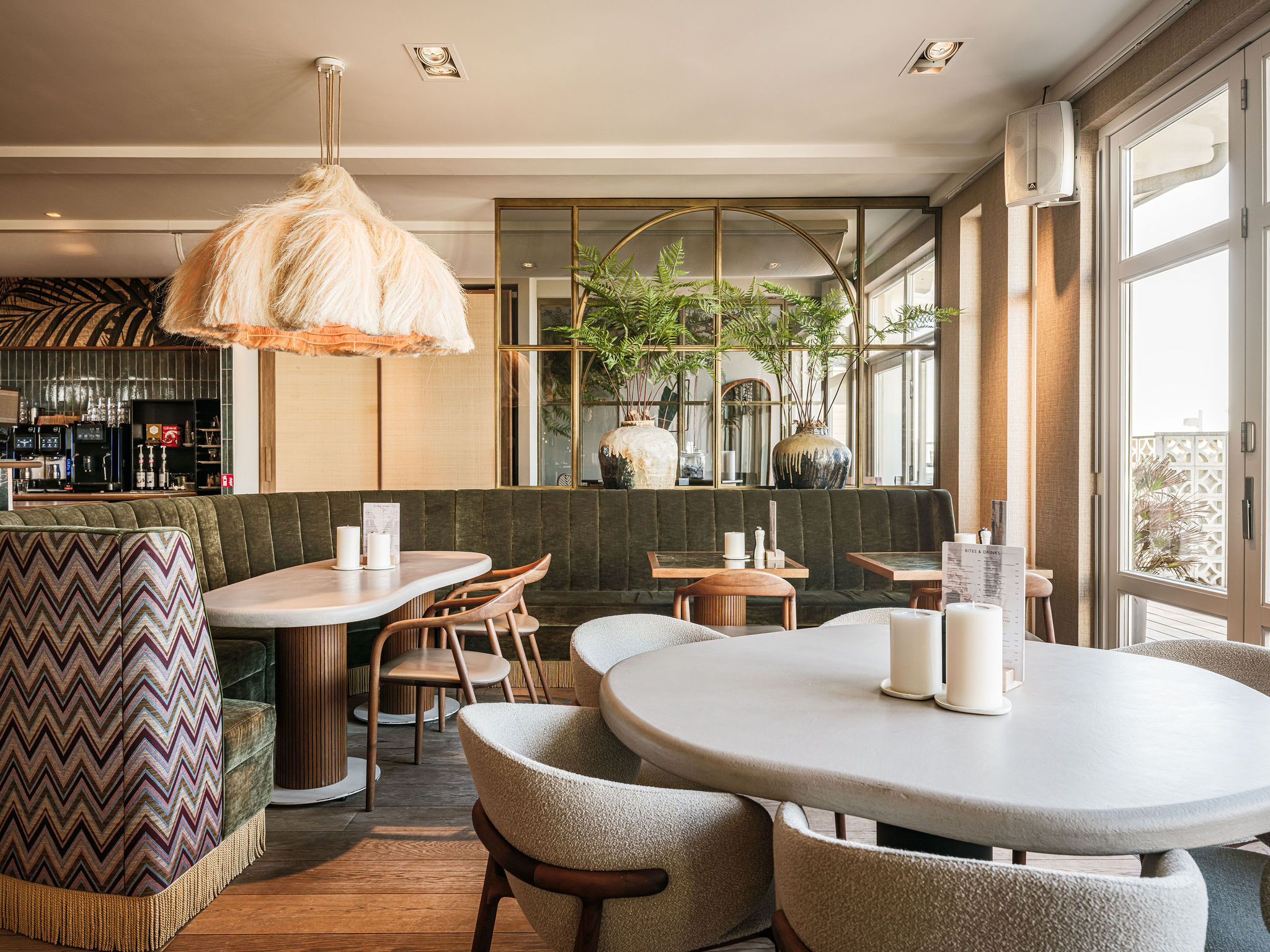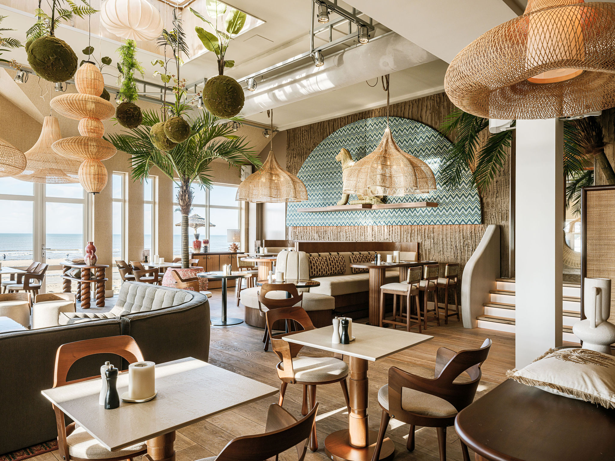 Om het vernieuwde interieur extra kracht bij te zetten, hebben wij nieuwe LED-lijnen en decoratieve hangarmaturen toegevoegd. Deze elementen zorgen voor extra warmte, diepte en een eigentijdse uitstraling. Overdag ondersteunt het licht de frisse beach uitstraling, terwijl in de avond een intieme en sfeervolle setting ontstaat.