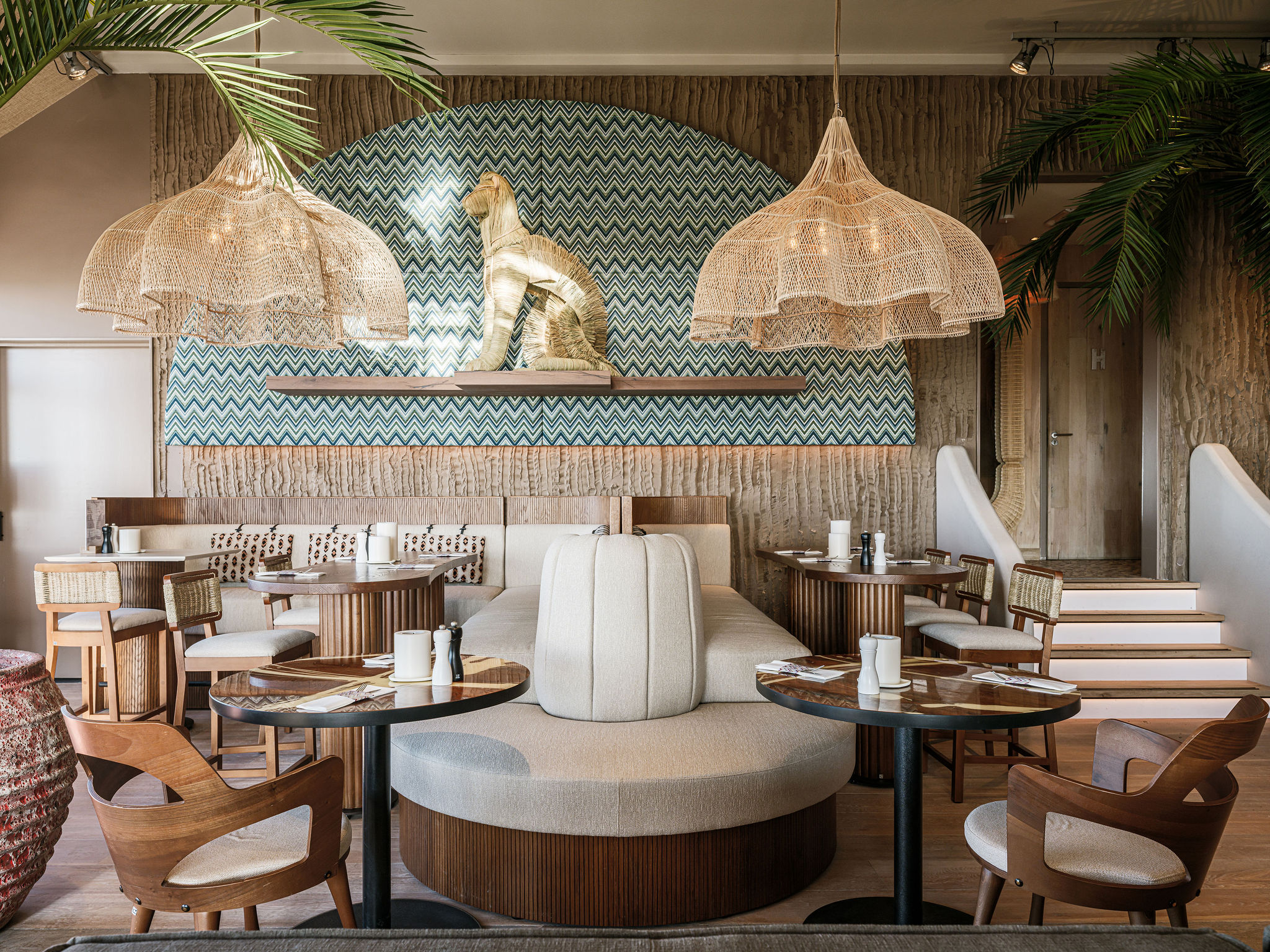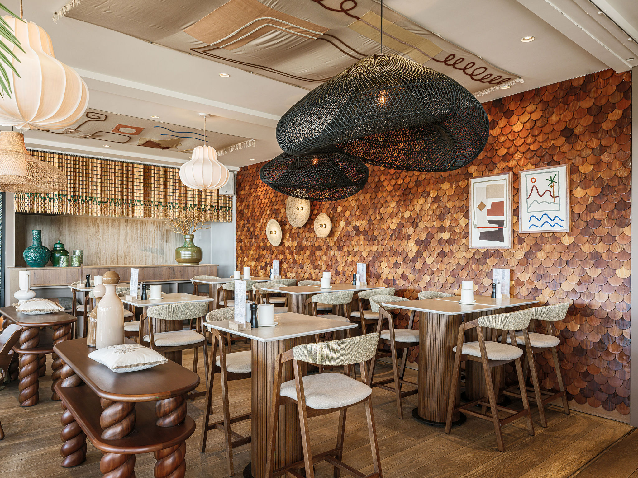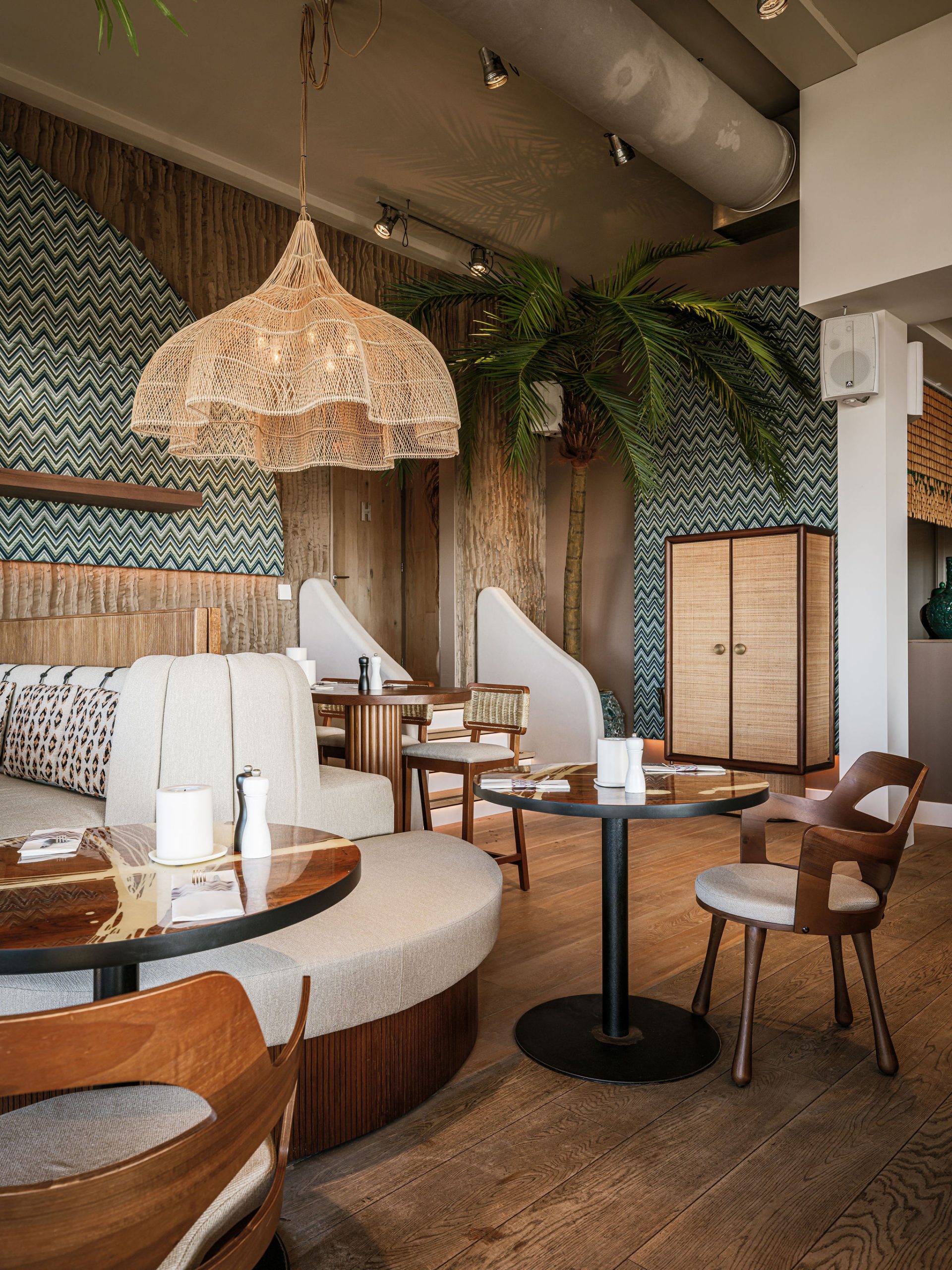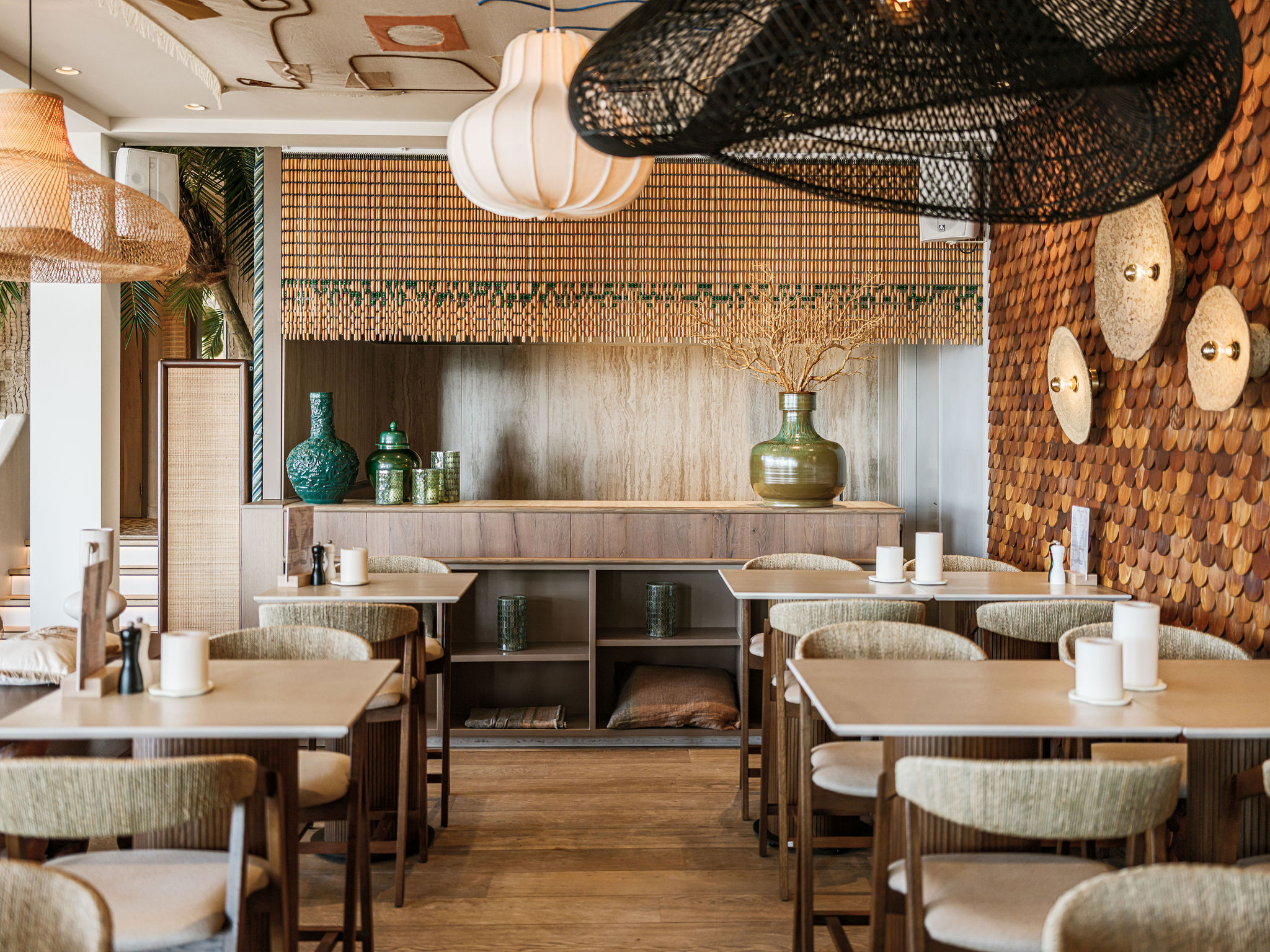 Om het vernieuwde interieur extra kracht bij te zetten, hebben wij nieuwe LED-lijnen en decoratieve hangarmaturen toegevoegd. Deze elementen zorgen voor extra warmte, diepte en een eigentijdse uitstraling. Overdag ondersteunt het licht de frisse beach uitstraling, terwijl in de avond een intieme en sfeervolle setting ontstaat.