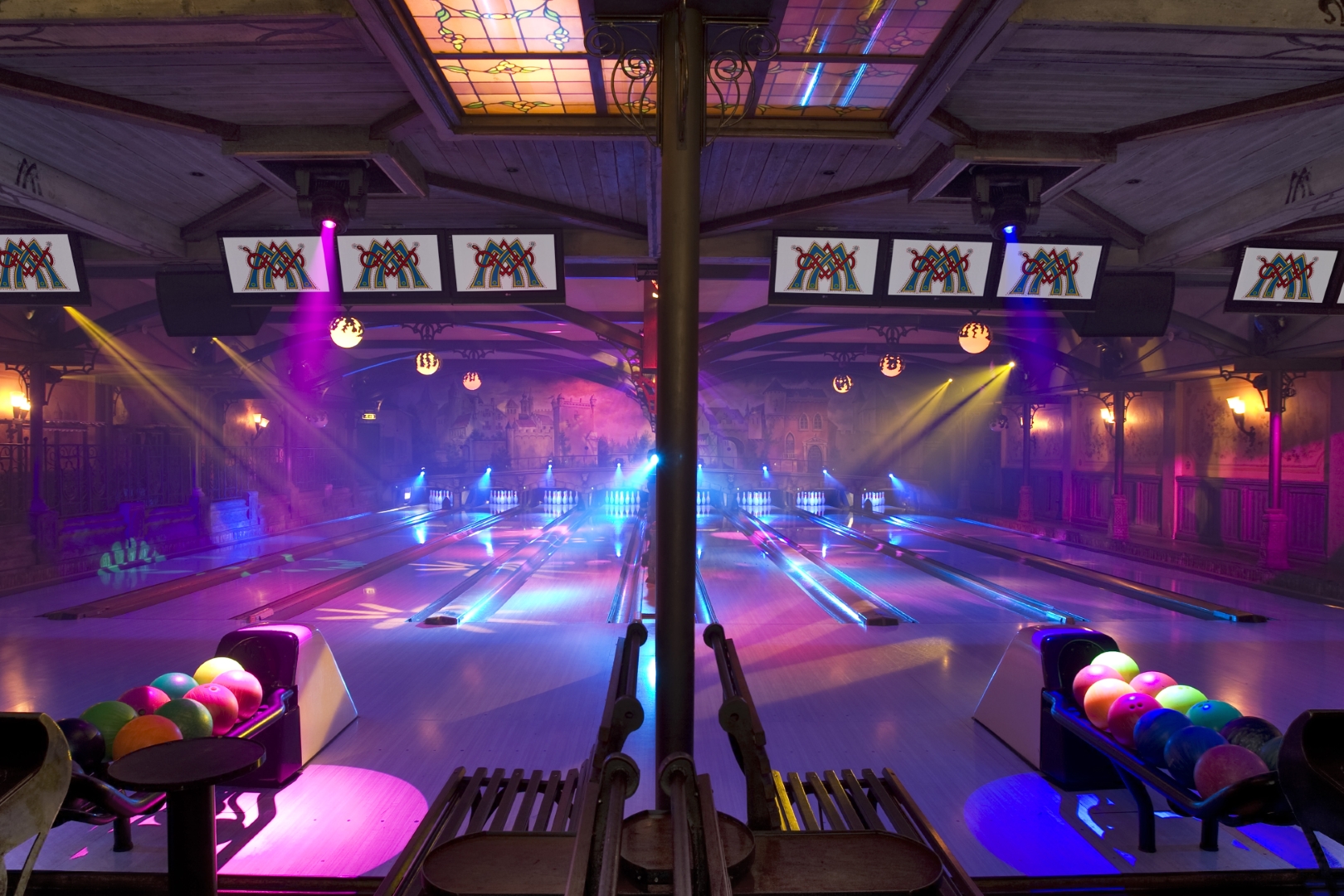 De acht bowlingbanen zijn uitgerust met projecties die reageren op iedere worp. Van races en doelpunten tot speelse animaties: elke beurt wordt onderdeel van een interactieve ervaring. Dit vraagt om een technische installatie die perfect meebeweegt met het spel en de sfeer in de ruimte. dEP de Sfeerontwerpers mocht voor dit project het volledige licht-, geluids- en showlichtconcept ontwerpen en realiseren, inclusief de centrale aansturing.
