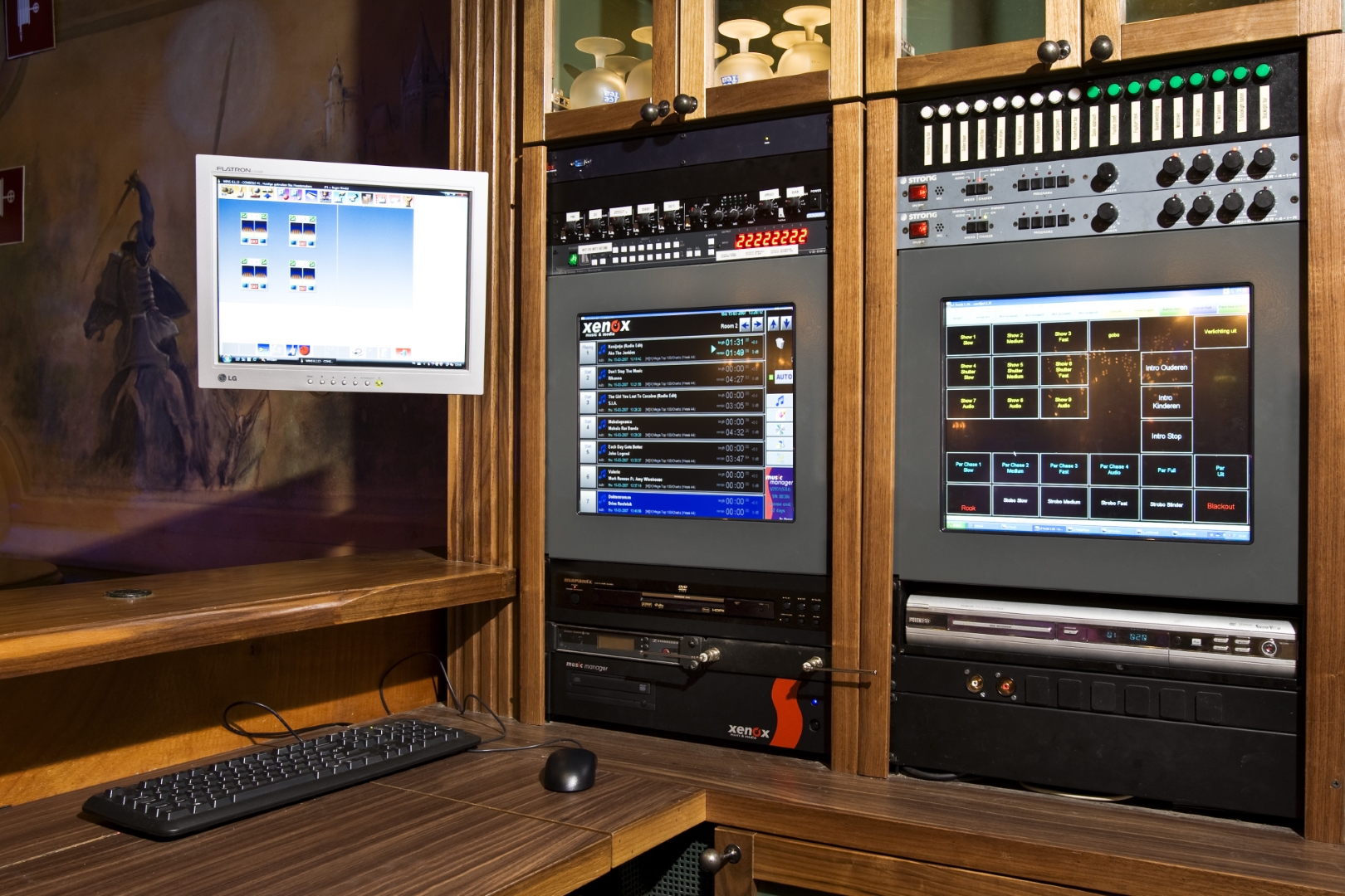 Alle technische installaties zijn gekoppeld aan één gebruiksvriendelijk besturingssysteem. Hierdoor kunnen licht, geluid en showverlichting eenvoudig worden afgestemd op verschillende momenten en settings. Of het nu gaat om een rustige middag of een drukke avond, de installatie past zich moeiteloos aan.