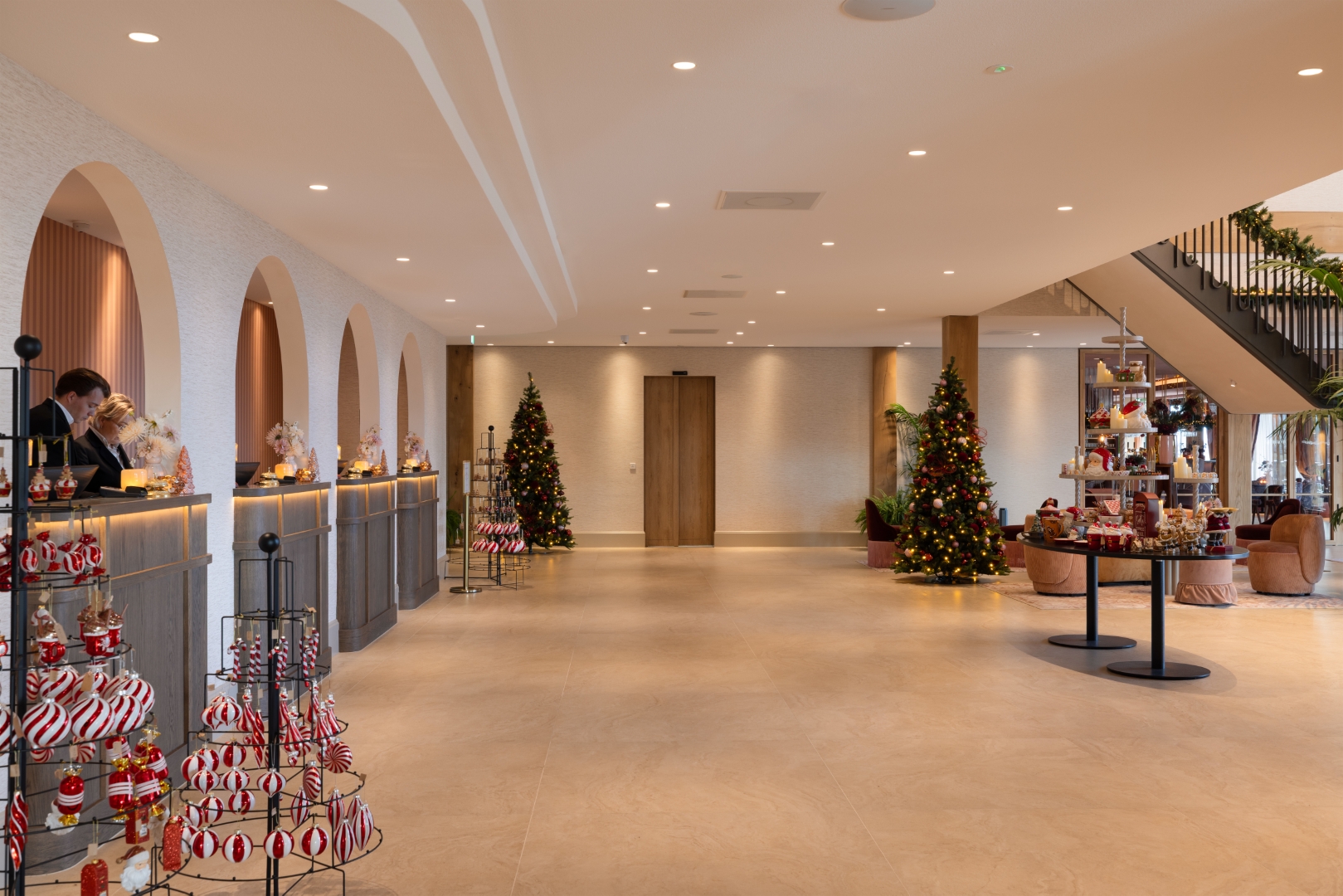 Een bijzonder en onderscheidend element binnen het project is het indrukwekkende sierarmatuur in de entree. Dit armatuur bestaat uit 24 kabels van ieder 4,5 meter lang, voorzien van 24 afzonderlijke LED-lichtbronnen. Het resultaat is een warm en luxueus lichtobject dat direct bij binnenkomst de toon zet en gasten verwelkomt met een gevoel van klasse en comfort.